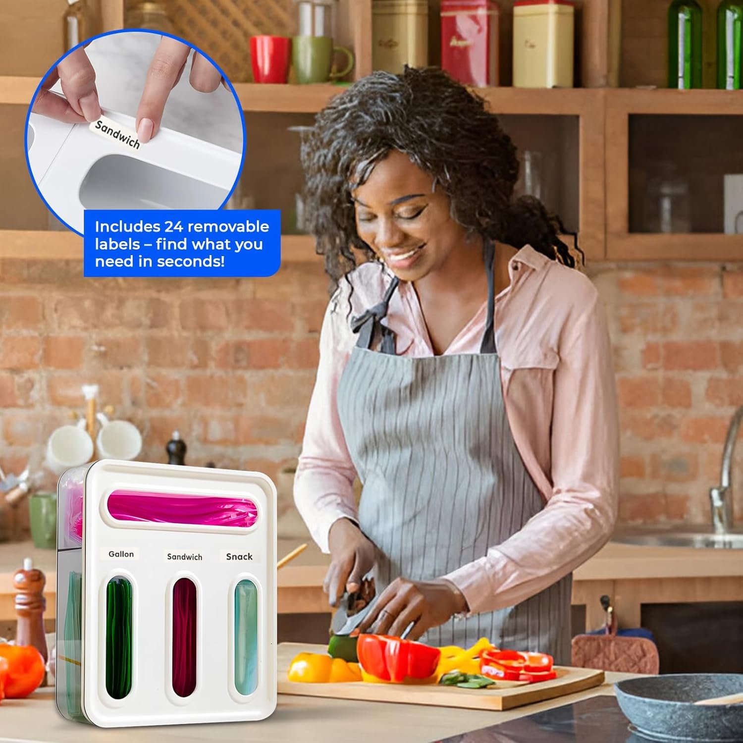 Keep your kitchen neat and efficient with the HIMUS 4-in-1 Sandwich Bag Organizer — a smart storage solution designed for modern homes. It features one large compartment for gallon-size bags and three equal sections for quart, sandwich, and snack bags.
