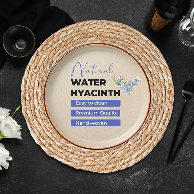 • ๐‡๐š๐ง๐๐œ๐ซ๐š๐Ÿ๐ญ๐ž๐ & ๐„๐œ๐จ-๐…๐ซ๐ข๐ž๐ง๐๐ฅ๐ฒ: This set of 6 round woven placemats is expertly handcrafted using 100% natural water hyacinth. Each piece is unique and durable, offering a sustainable, stylish addition to your table for daily dining or special occasions. These placemats woven from natural materials ensure quality and sustainability.